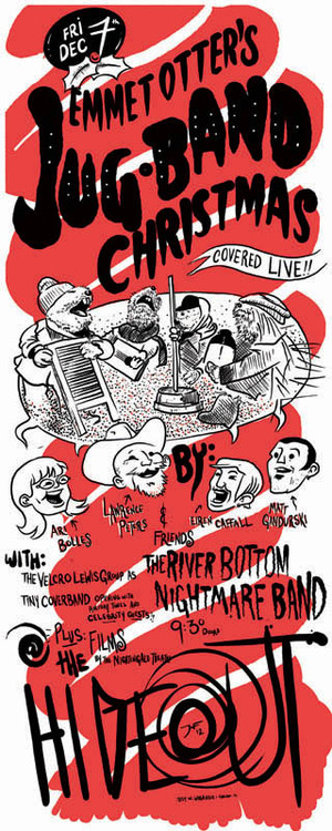 We’re doing Emmet Otter’s Jug Band Christmas at the Hideout!  I’m going to be singing the songs of Paul Williams on stage with my drummer and friend Lawrence Peters and members of our bands Ari Bolles and Matt Gandurski on December 7, 2012.  Tiny Cover Band is going to open playing holiday music on tiny instruments and Christy LeMaster of the Nightengale Theater microcinema will play holiday movies.  Should be a wonderful time.  Now, if all the single mother with a music habit references don’t kill me onstage…