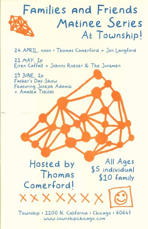 Saturday, May 21, 2016 I’ll be playing a family friendly matinee at The Township in Chicago. Playing a set which includes a ton of new music from the new record I’m writing. So glad to be playing with Ariel Bolles and Zachariah Parker. So glad to be singing harmonies.
